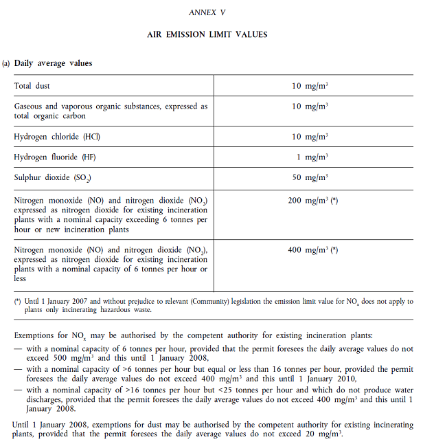 1100 deg C for dangerous waste containing halogenated organic substances with content of chlorine or its compounds.