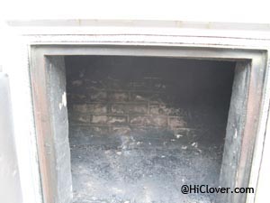 * Frontage of loading with door seals gone up on hinges, wheel of screw plug, flexible joint, and stuffing insulating out of refractory.